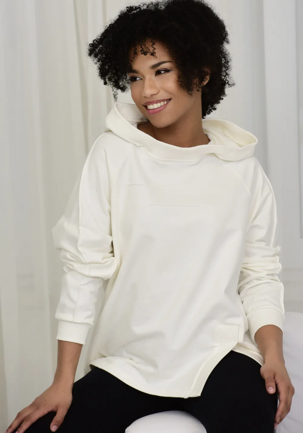 Bluza dresowa oversize w kolorze białym. Została uszyta z miękkiej, przyjaznej dla skóry bawełny z dodatkiem rozciągliwego elastanu. Połączenie tych materiałów zapewni Ci wygodę noszenia każdego dnia. Szeroka bluza ze ściągaczami będzie świetnie pasować do przylegających legginsów lub spodni z prostymi nogawkami oraz sneakersów. SKŁAD 92 COTTON , 8 ELASTAN WYMIARY BLUZY XS/S M/L XL/XXL 1/2 BIUST 56 60 64 1/2 TALIA 56 60 64 DŁUGOŚĆ PRZODU 63.5 64,5 65,5 1/2 OBWODU DOŁU 51 55 59 RĘKAW 63 63.5 64 DŁUGOŚĆ TYŁ 62 63 64 WYMIARY CIAŁA XS S M L XL XXL BIUST 82-85 86-89 90-93 94-97 98-101 102-105 TALIA 66-69 70-73 74-77 78-81 82-85 86-89 BIODRA 92-95 96-99 100-103 104-107 108-111 112-115