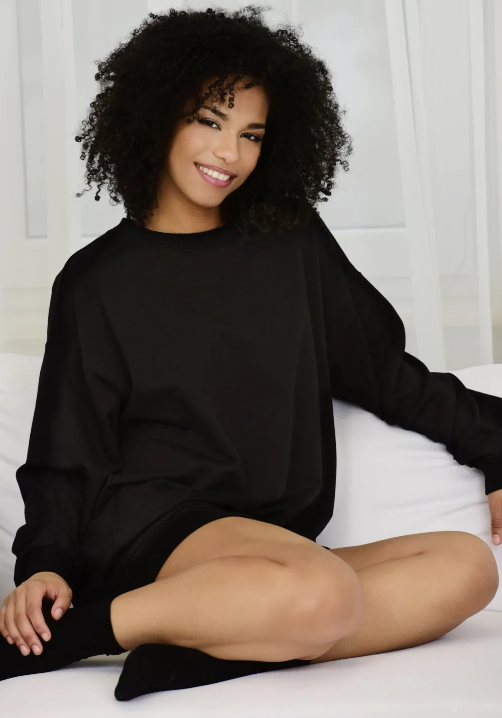 Długa, czarna bluza dresowa. Nasza kolekcja sportowa została stworzona dla fanek prostych, a jednocześnie charakterystycznych stylizacji. Jesteśmy pewni, że oddychający, miły w dotyku materiał zapewni Ci wygodę, a oversize’owy fason dopasuje się do sylwetki. Bluza będzie dobrze wyglądać razem ze wzorzystymi legginsami i sneakersami. SKŁAD 92 COTTON , 8 ELASTAN WYMIARY BLUZY XS/S M/L XL/XXL 1/2 BIUST 59 63 67 1/2 TALIA 56 60 64 1/2 BIODRA 58 62 66 DŁUGOŚĆ RĘKAWA 63 64 65 DŁUGOŚĆ 70 71 72 WYMIARY CIAŁA XS S M L XL XXL BIUST 82-85 86-89 90-93 94-97 98-101 102-105 TALIA 66-69 70-73 74-77 78-81 82-85 86-89 BIODRA 92-95 96-99 100-103 104-107 108-111 112-115