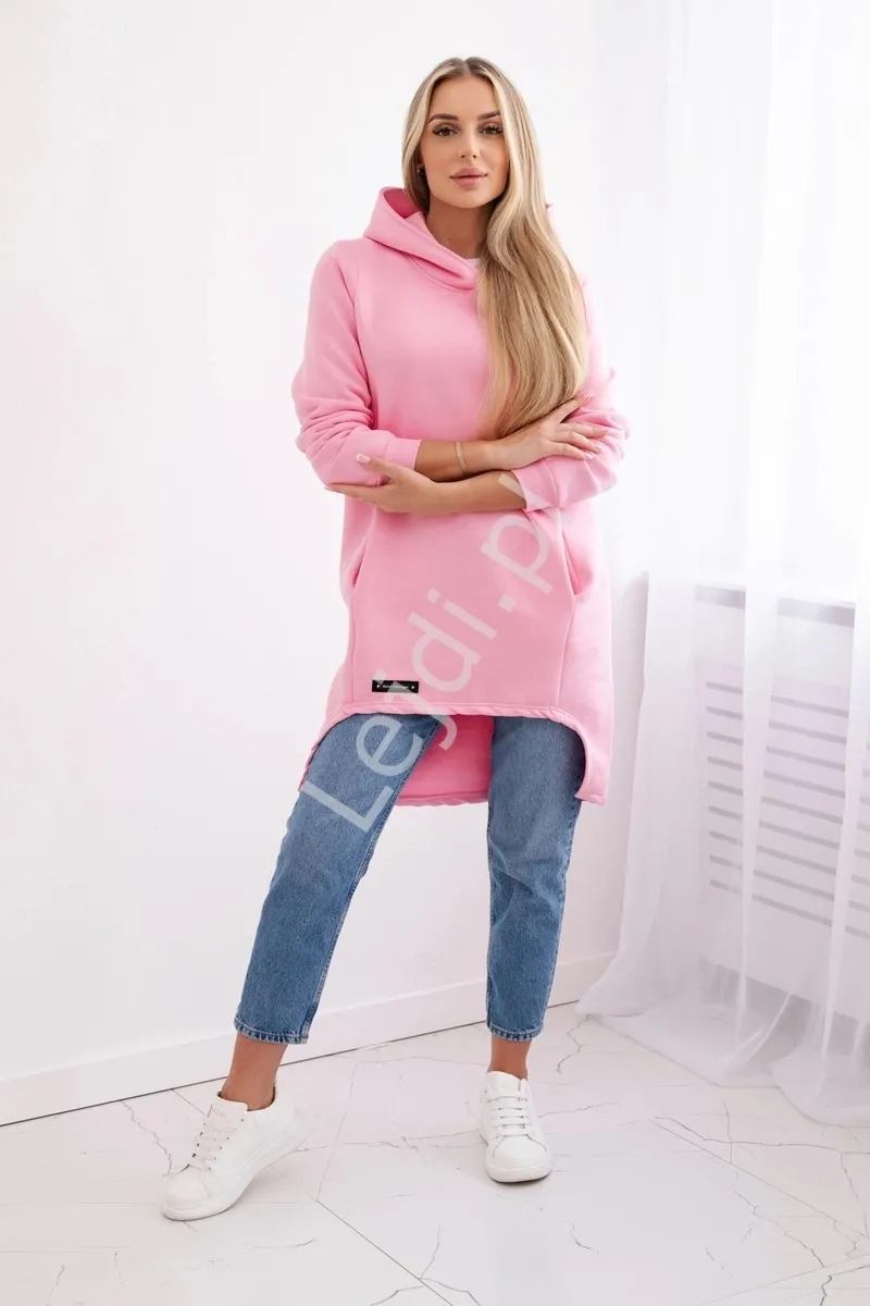 Bluza ocieplana rozpinana z dłuższym tyłem różowa