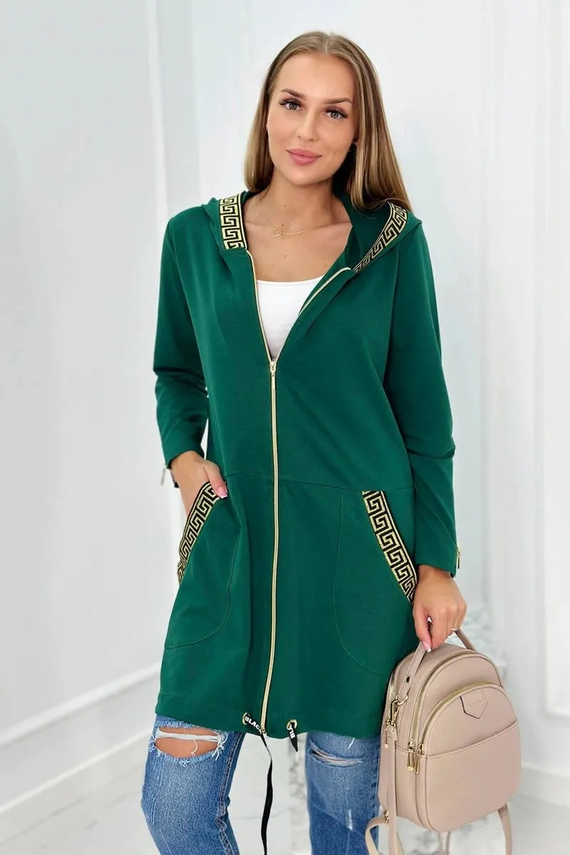 Bluza z ozdobną taśmą ciemno zielona 9190