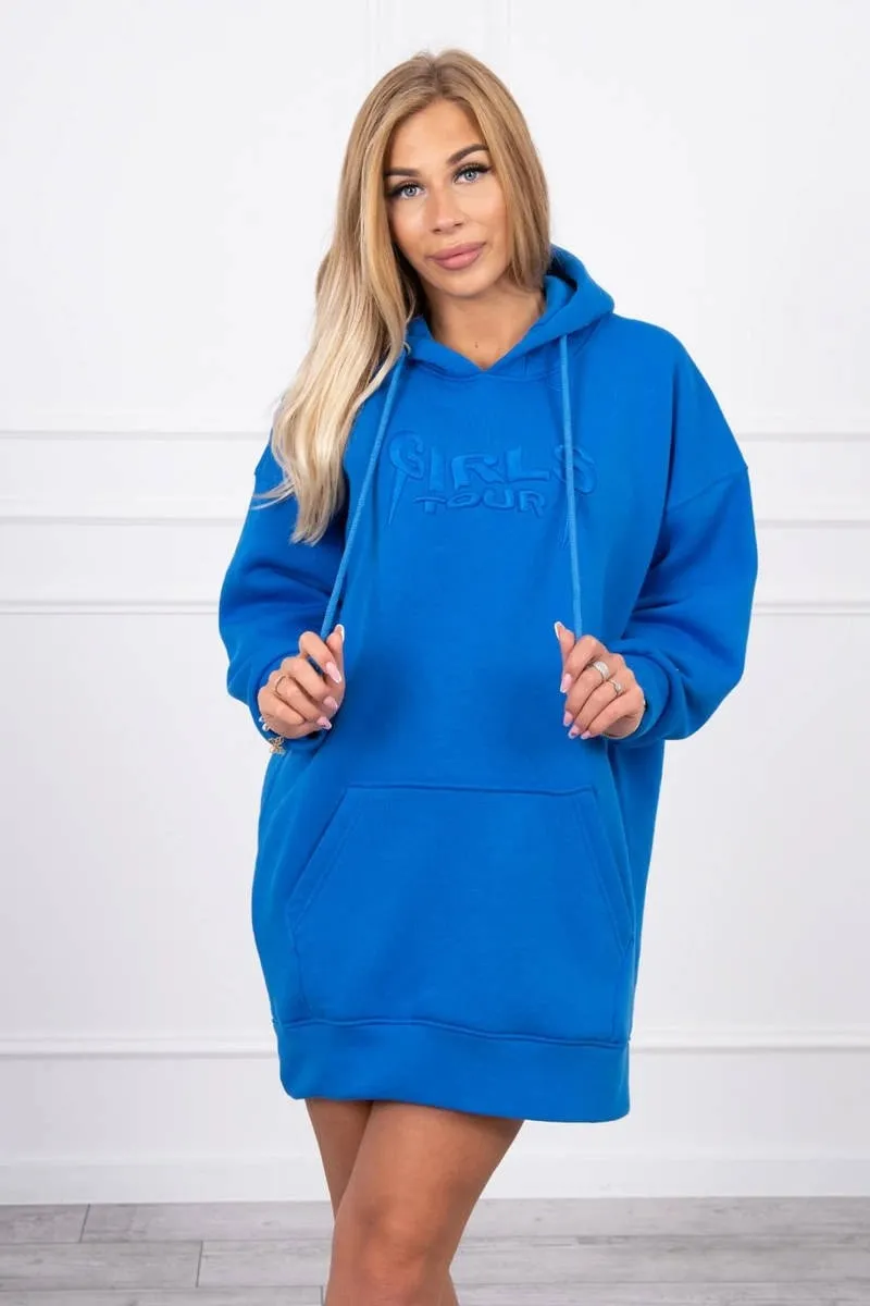 Bluza ocieplana z haftowanym napisem oversize chabrowa