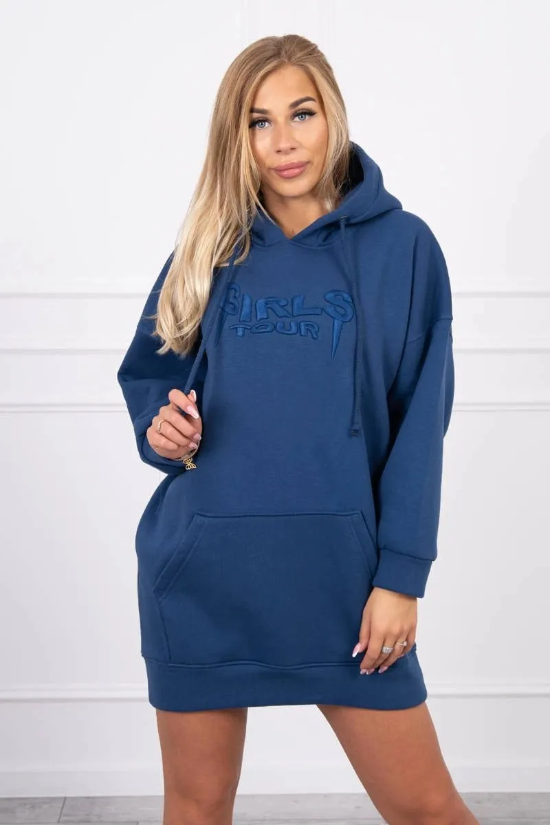 Bluza ocieplana z haftowanym napisem oversize jeansowa