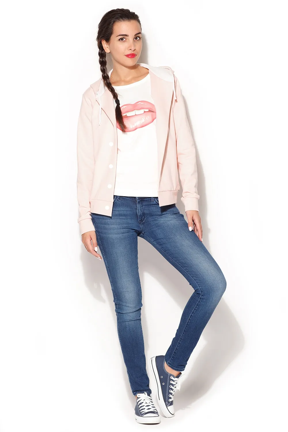 Sportowa Bluzka na Zatrzaski z Kapturem - Różowy