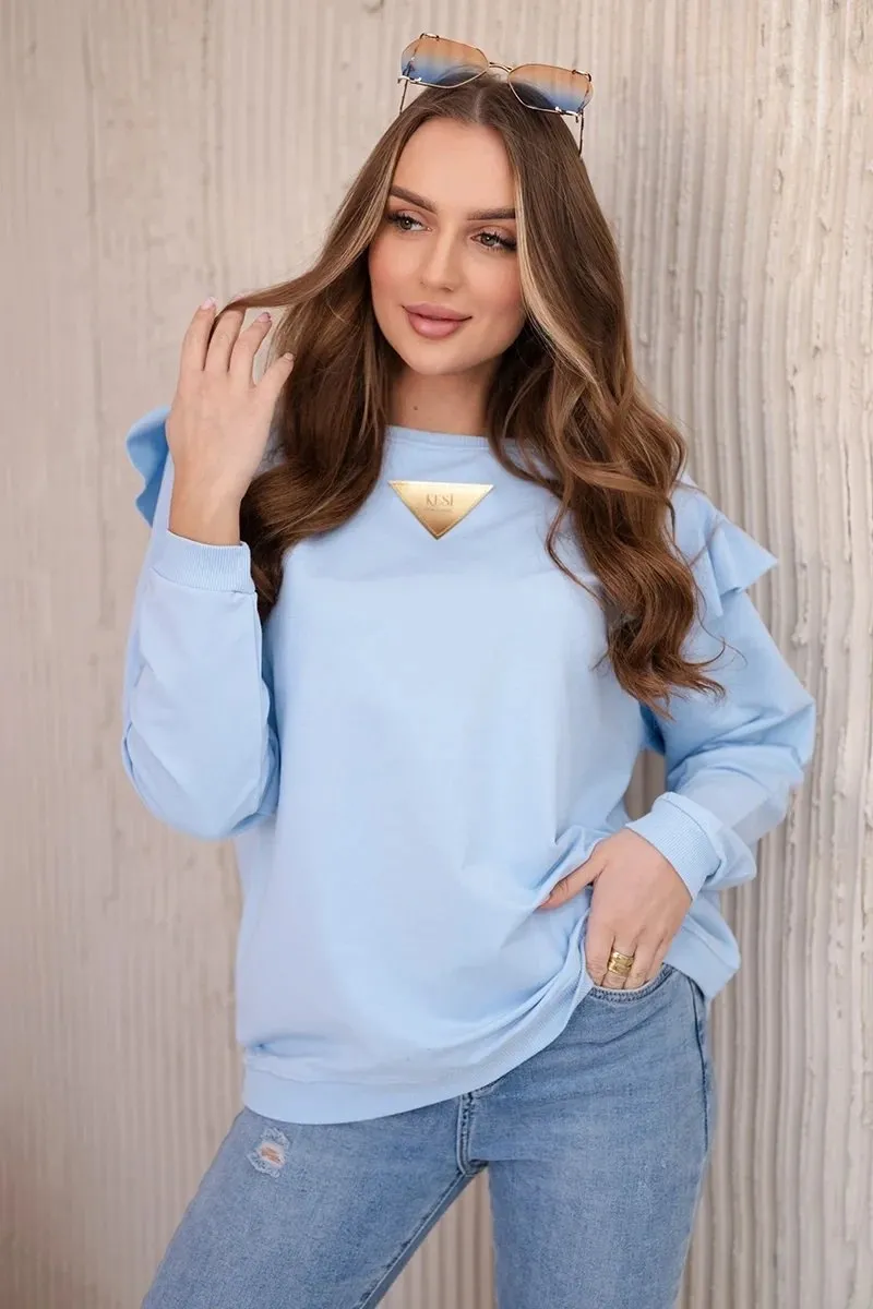 Bluzka bawełniana z falbankami na ramionach niebieska