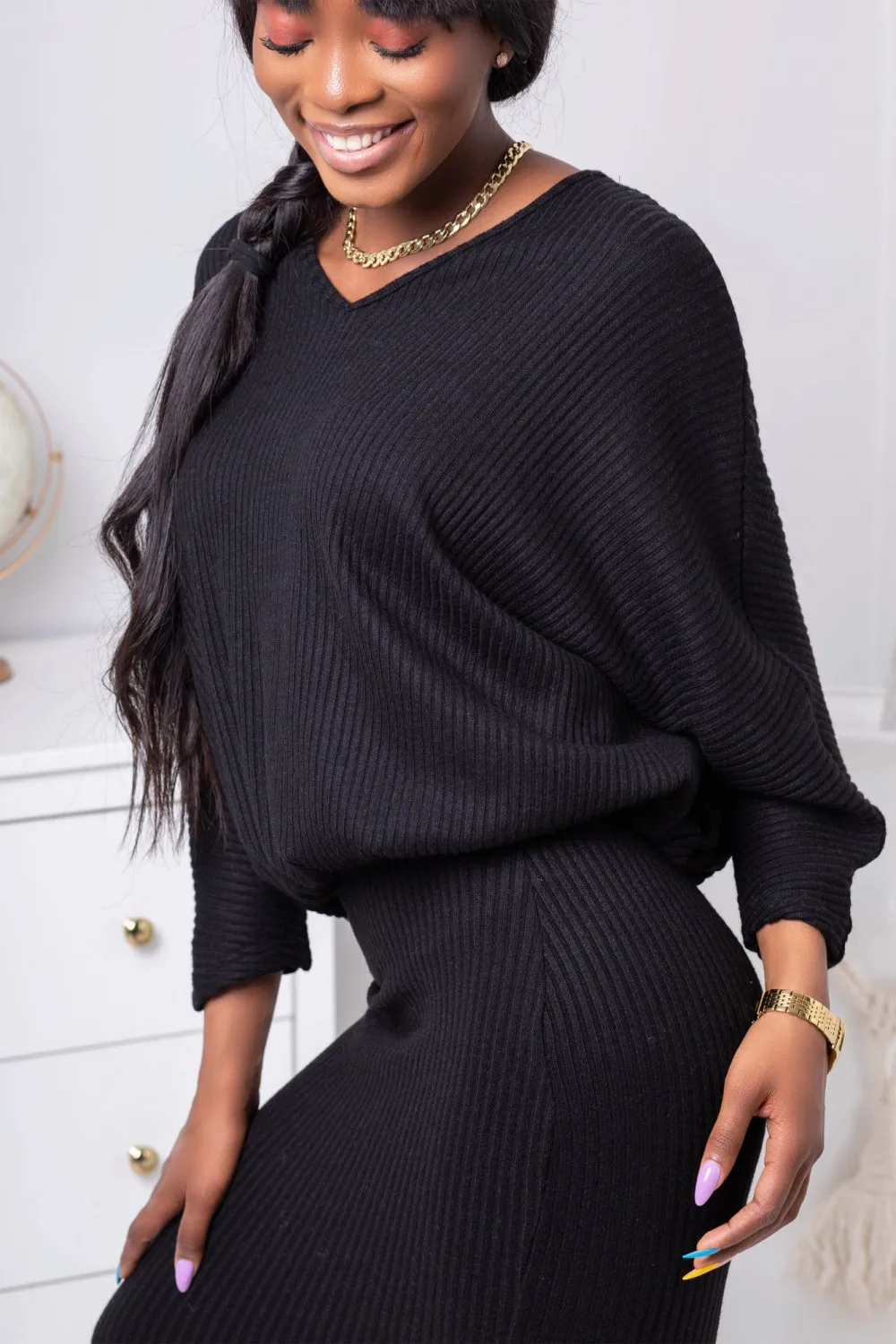BLUZKA LAURA W PRĄŻEK SWETERKOWY CZARNA 134