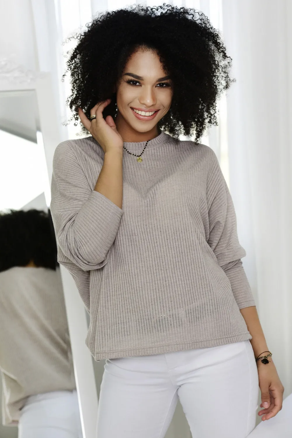 Prążkowana bluzka oversize w kolorze melanżowym. Może być podstawą wielu codziennych stylizacji, zarówno jesienno-zimowych, jak i wiosenno-letnich. Luźna bluzka z zabudowanym dekoltem zapewni Ci komfort noszenia. Połącz ją z białymi rurkami i beżowymi botkami za kostkę. Całość uzupełnij długą, sportową marynarką. Bluzka o kroju oversize. Delikatna i miła w dotyku. Skład: 80%Pollester, 15% Lurex, 5% Spandex XS S M L 1/2 BIUST 60 62 64 66 1/2 TALIA 56 58 60 62 1/2 BIODRA 54 56 58 60 RĘKAW 57,5 58 58,5 59 DŁUGOŚĆ 59,5 60 60,5 61