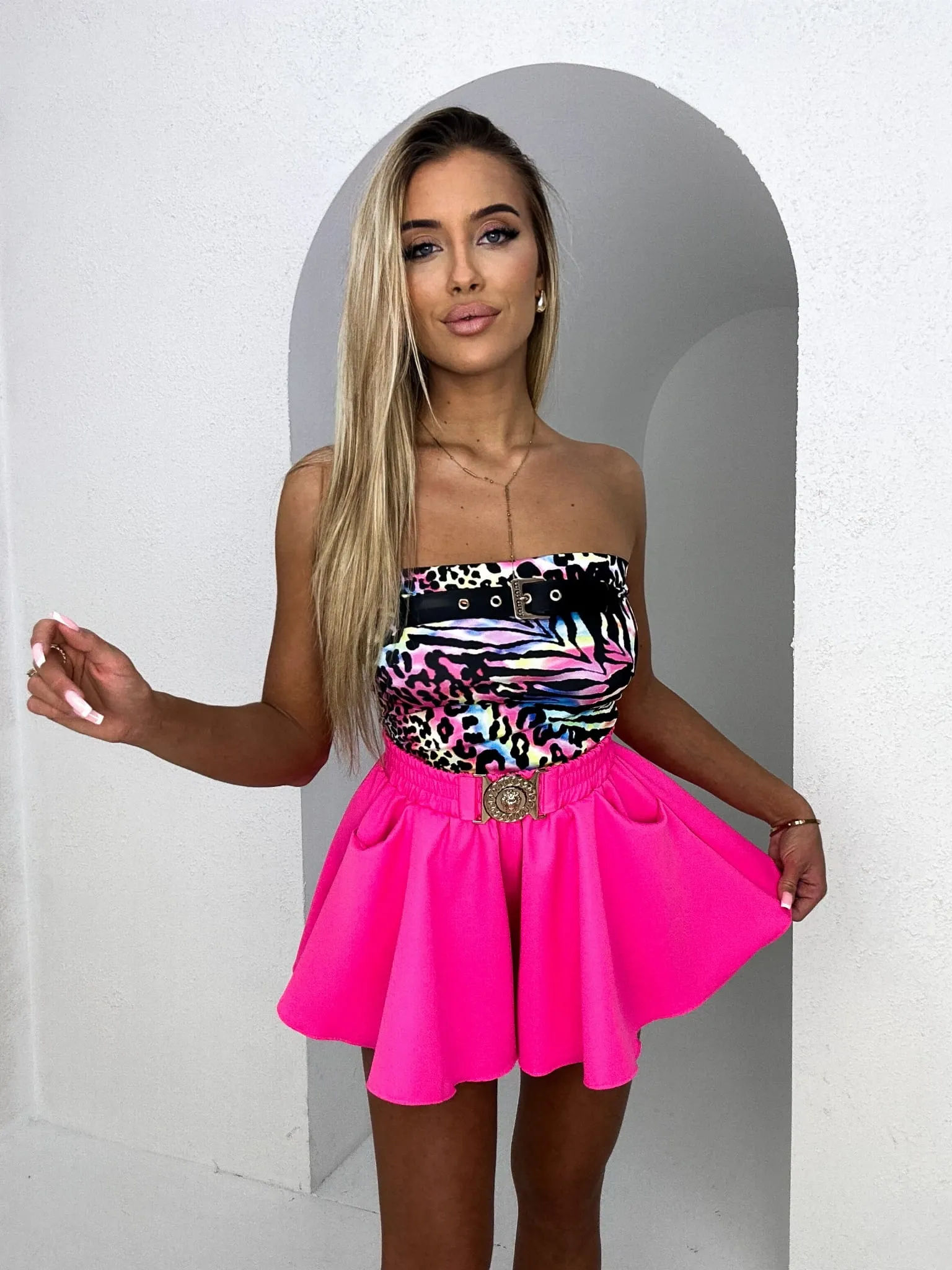 Bluzka polskiej produkcji długi top z klamrą różowa Annoy W11