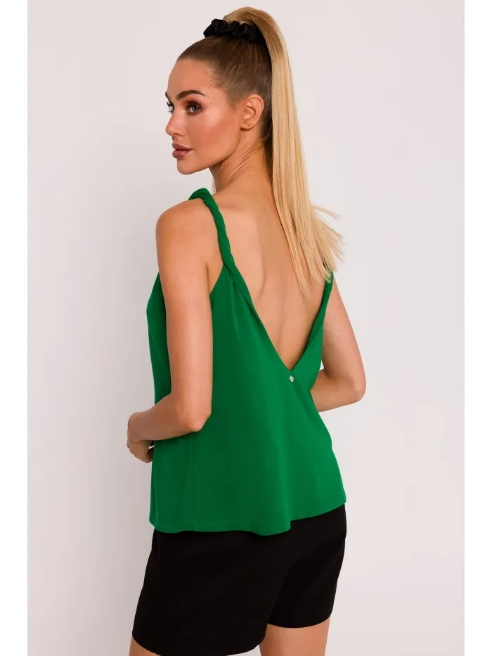 Bluzka z dekoltem na plecach - zielona - Rozmiar: M