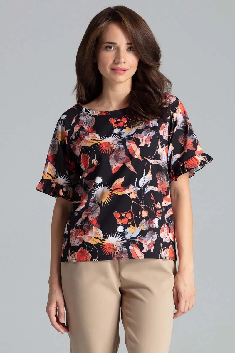 Bluzka z Kimonowym Rękawem z Falbanką Wzór 109