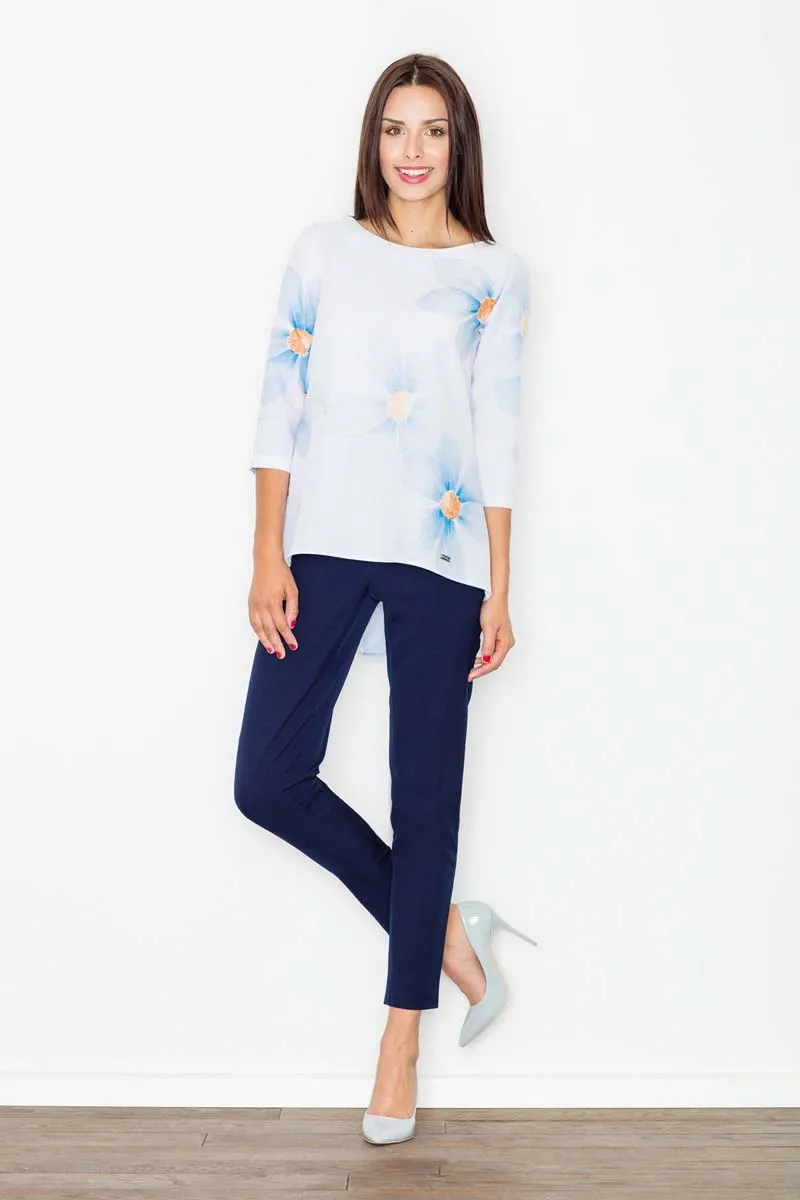 Bluzka z Rękawem do Łokcia Odcienie Niebieski Różowy