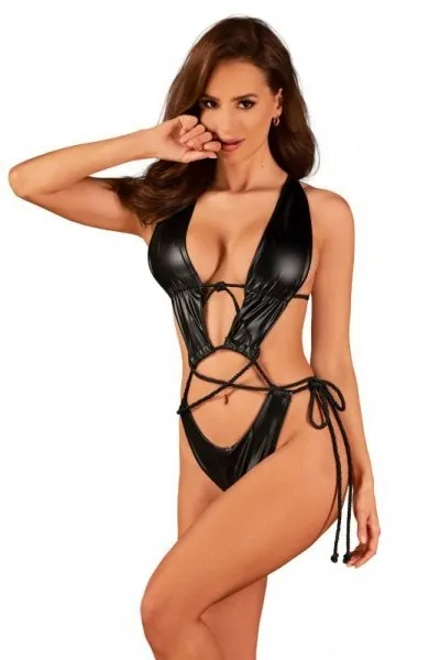 Koronkowe body Merlys z długim rękawem.zapinanie w kroku – wygoda użyciabłyszcząca zawieszka między piersiamisznurowanie na biodrach – seksowny elementodpinany, regulowany pasek na ramionach – nosisz tak, jak lubiszmiły w dotyku materiał (85% poliamid, 15% elastan)…