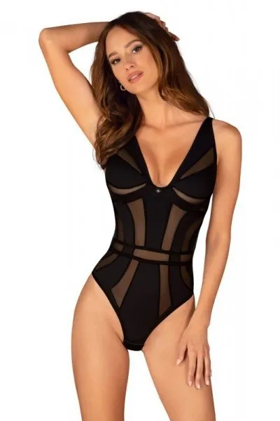 Chic Amoria body otwarteJeśli szukasz gustownej bielizny, która podkręci atmosferę w Waszej sypialni i jednocześnie doda Ci szyku, to mamy dla Ciebie doskonałą propozycję. To eleganckie body wyeksponuje Twoją figurę, dodając całości pikanterii otwartym krokiem. Pozwól sobie na odrobinę szaleństwa!Poznaj więcej szczegółów:body w czarnym kolorzeidealne dopasowanie dzięki regulowanym ramiączkom, kilkustopniowemu zapięciu i fiszbinomelegancka zawieszka – ciekawy detalotwarty krój – oryginalne rozwiązaniepołączenie prześwitującej siateczki i gładkiego materiału – niebanalne zestawienieprzyjemny w dotyku materiał – zapewni wygodę (94% polyamide, 6% elastane)…