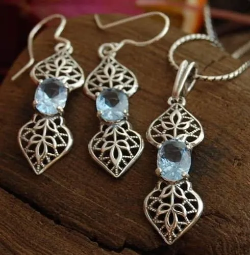 Oferuje państwu niezwykły, stylowy komplet srebrnej biżuterii, dla którego inspiracją była oryginalna biżuteria z okresu międzywojennego. W formie przywodzącej na myśl kształt klepsydry zamkniete zostały misterne ażurowe zdobienia a w przewęzeniu bizuterii zakuty został fasetkowany ametyst. W tej biżuterii każda kobieta poczuje się wyjątkowo – przekonaj się sama… Srebro oksydowane. Wymiar motywu zdobniczego 2,9 x 1,1cm. (wymiar broszki) Długość kolczyków z zapięciem 4,3cm. Długość bransoletki 19cm. Długość wisiorka z zwieszką 4cm. Wymiar kamienia 6 x 8cm. Srebro próby 925. W naszej ofercie znajdą Państwo taki sam model biżuterii z innym kamieniem! Zachecam do zapoznania się z naszą ofertą..
