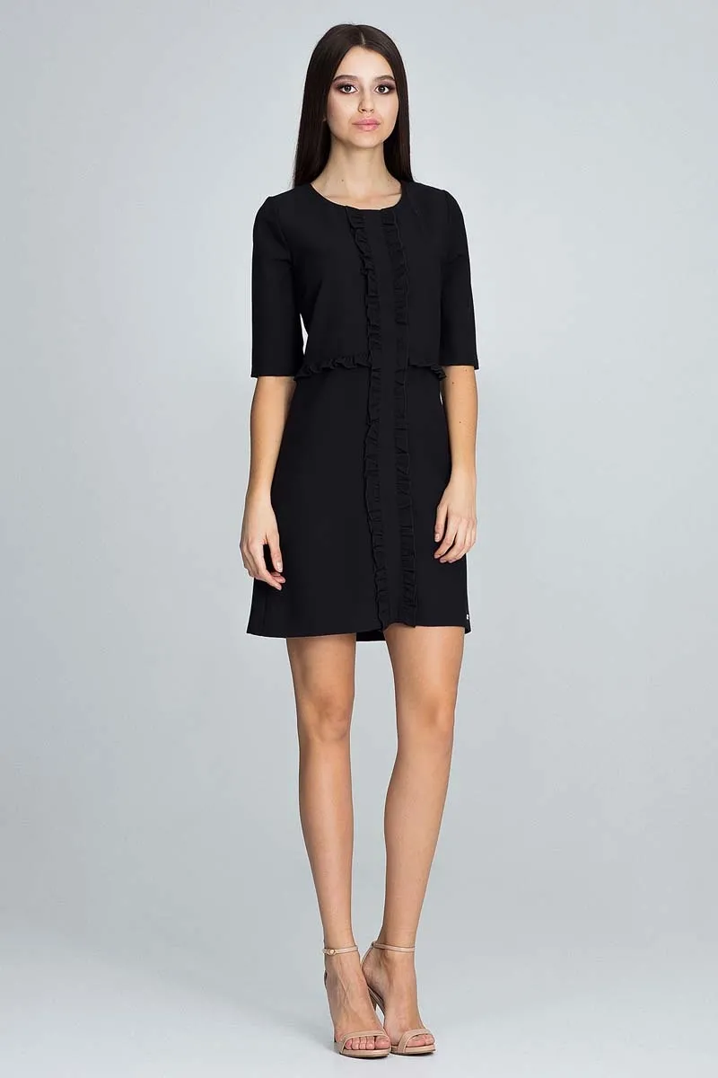 Bordowa Elegancka Krótka Sukienka z Falbankami