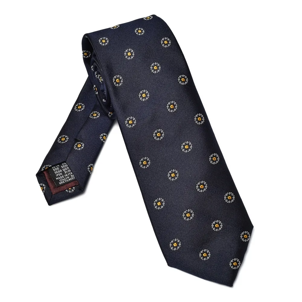 Granatowy jedwabny krawat w w grochy