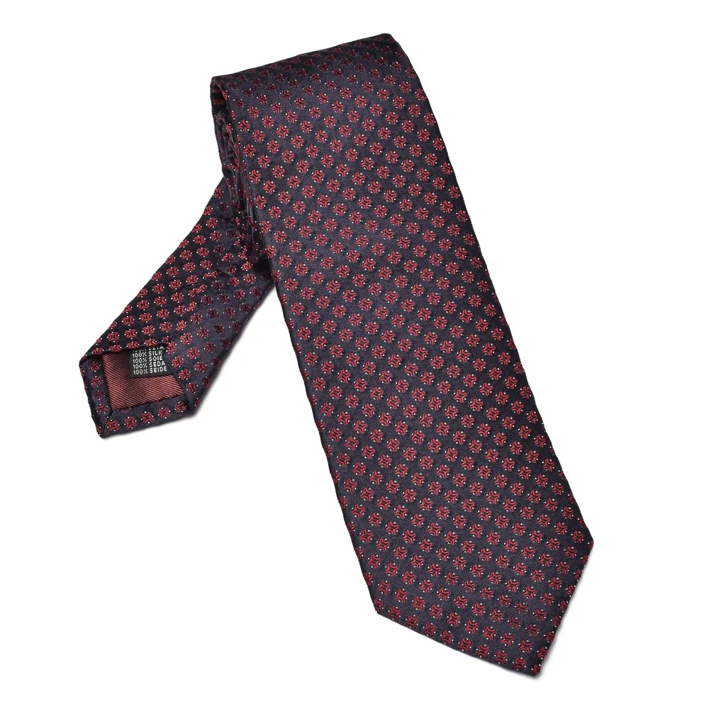 Granatowy krawat jedwabny w czerwony wzór graficzny