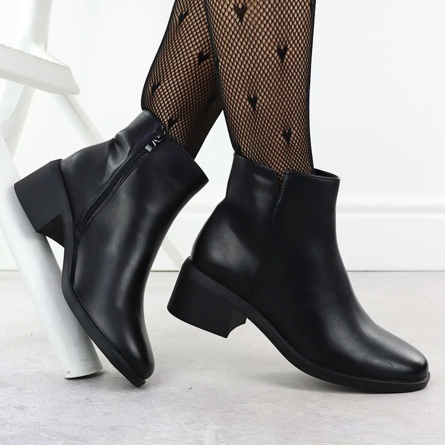 Botki damskie ocieplane na klocku czarne Sergio Leone BT25239
