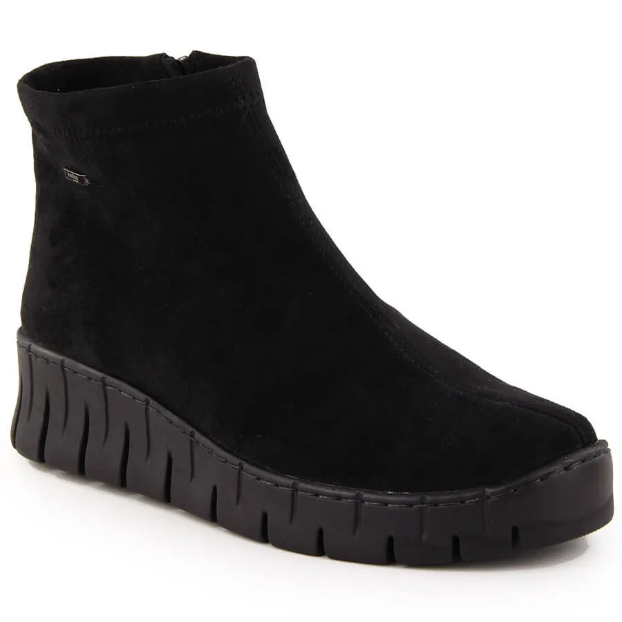 Skórzane botki damskie zamszowe czarne Helios 506P