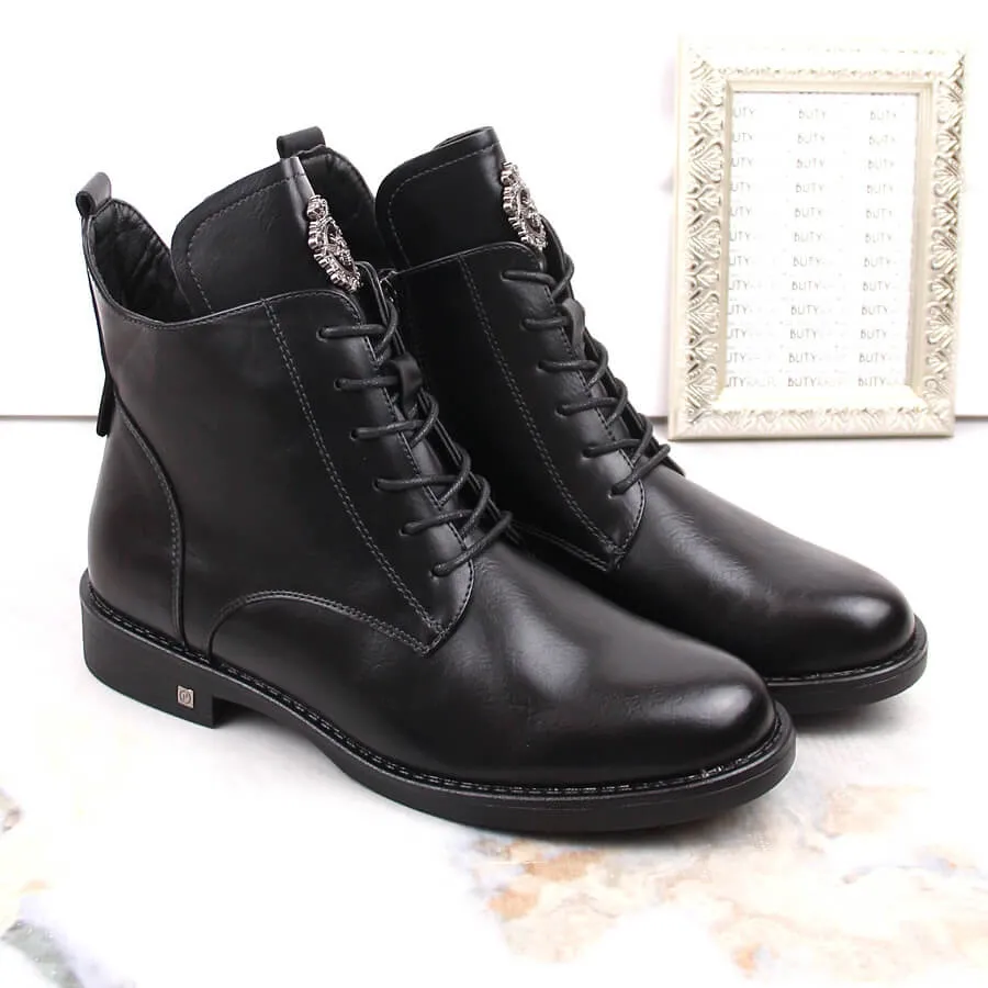Botki damskie sznurowane i na zamek czarne Potocki SZ12179