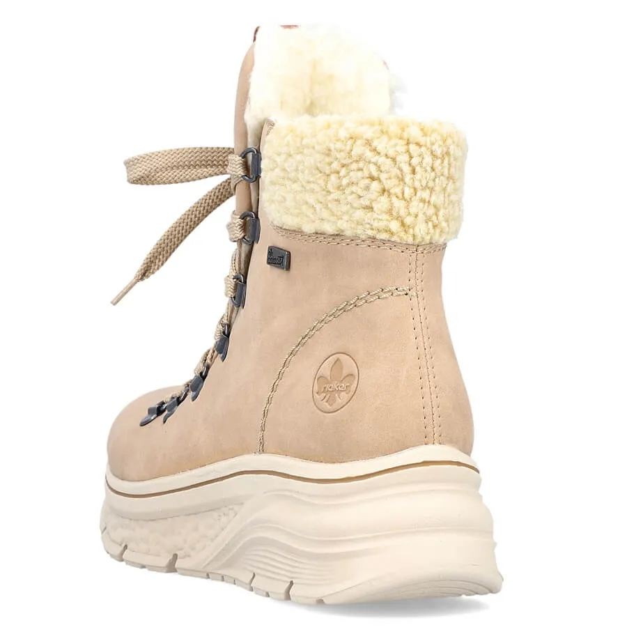 Wodoodporne botki śniegowce damskie ocieplane beżowe Rieker 48034-20