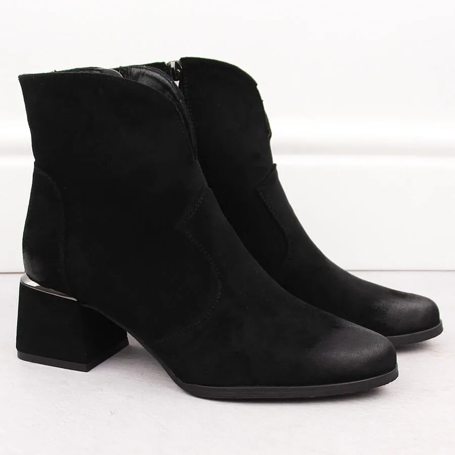 Botki damskie zamszowe na obcasie czarne Potocki 12422