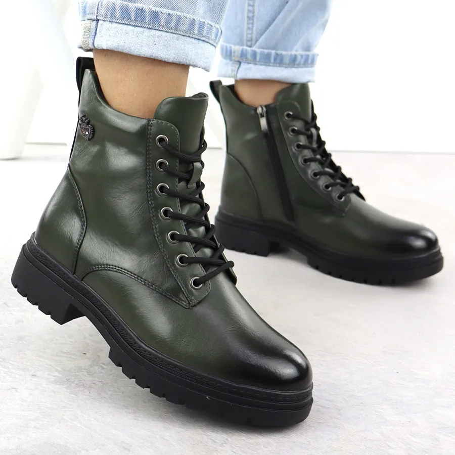 Botki damskie workery ocieplane zielony Potocki 25-19324