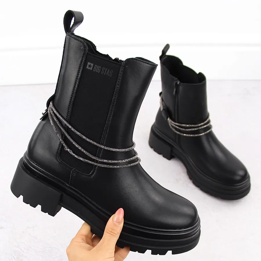 Skórzane sztyblety damskie botki czarne Big Star OO274A258
