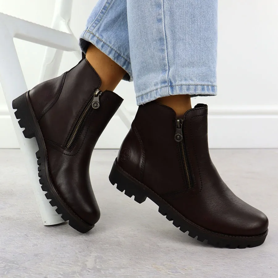 Skórzane botki damskie na suwak brązowe Rieker 78556-27