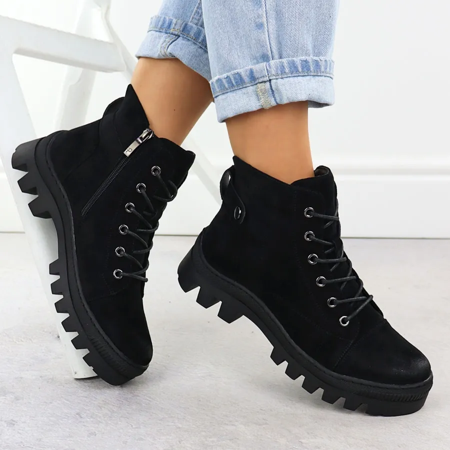 Stylowe botki to najnowsza propozycja renomowanej marki Potocki. Wykonane z wysokiej jakości zamszowej skóry ekologicznej, ocieplane przyjemnym w dotyku futerkiem. Botki gwarantują doskonałe dopełnienie stylizacji, zapewniając pełen komfort chodzenia.