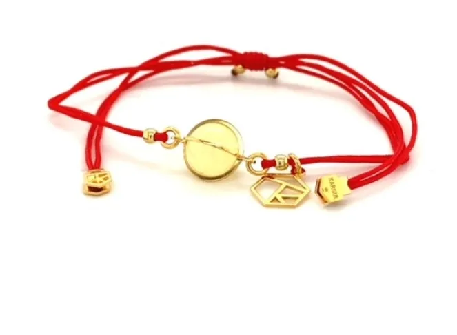 Bransoleka srebrna pozłacana qle z żółtym bursztynem na czerwonym sznurku