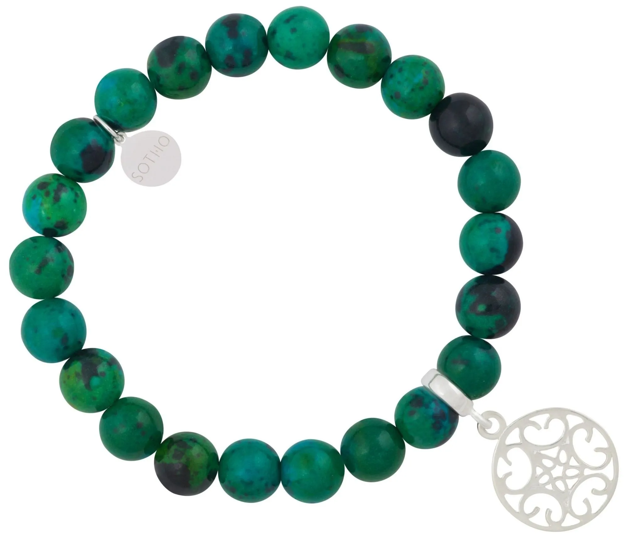 Zielona bransoletka chryzokola ze srebrną rozetą
