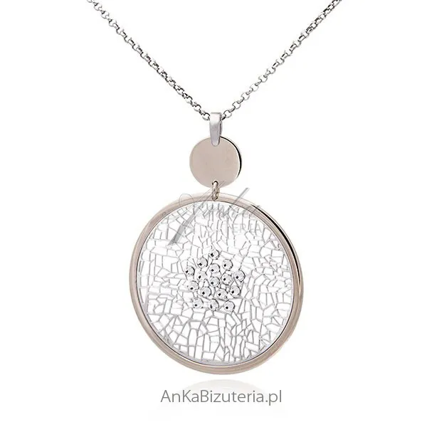 Naszyjnik srebrny rodowany ażurowa siateczka z cyrkoniami