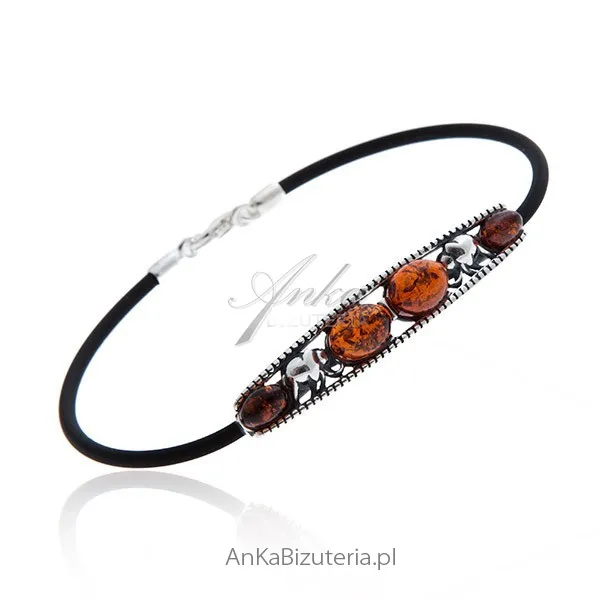 Bransoletka srebrna z bursztynem na kauczuku kolekcja: "słonik"
