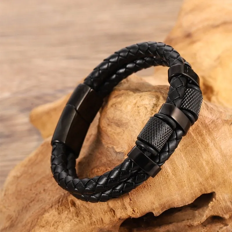 Bransoletka PLECIONA STAL SZLACHETNA 316L SKÓRA