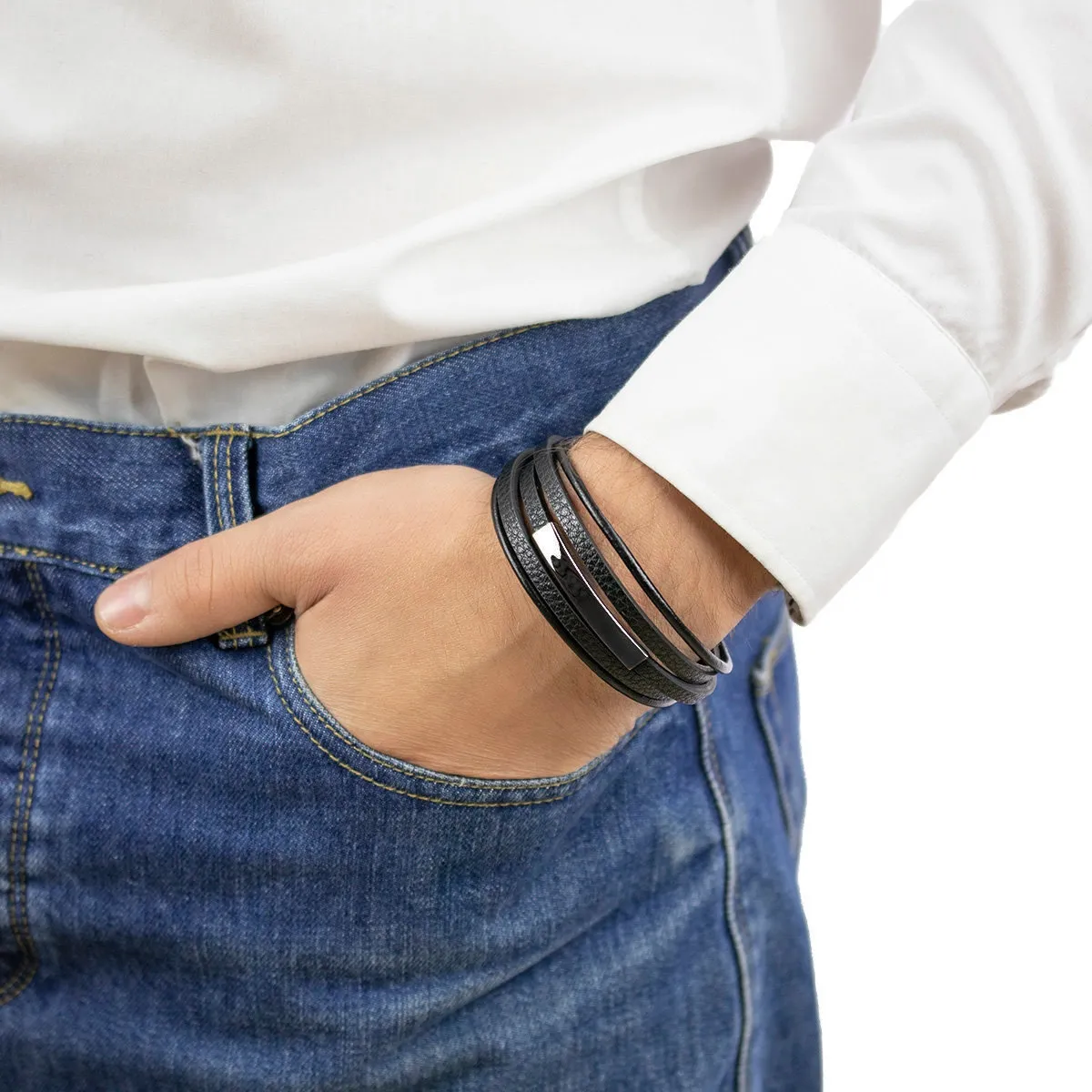 Bransoletka męska STAL SZLACHETNA 316L SKÓRA