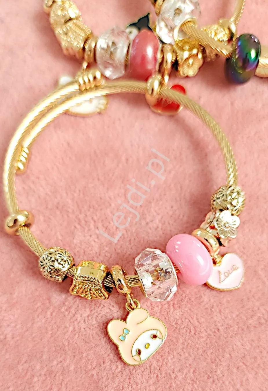 Bransoletka modułowa z charmsami z Kuromi oraz cyrkoniową nutką. Przepiękna bransoletka na prezent dla dziewczynki.