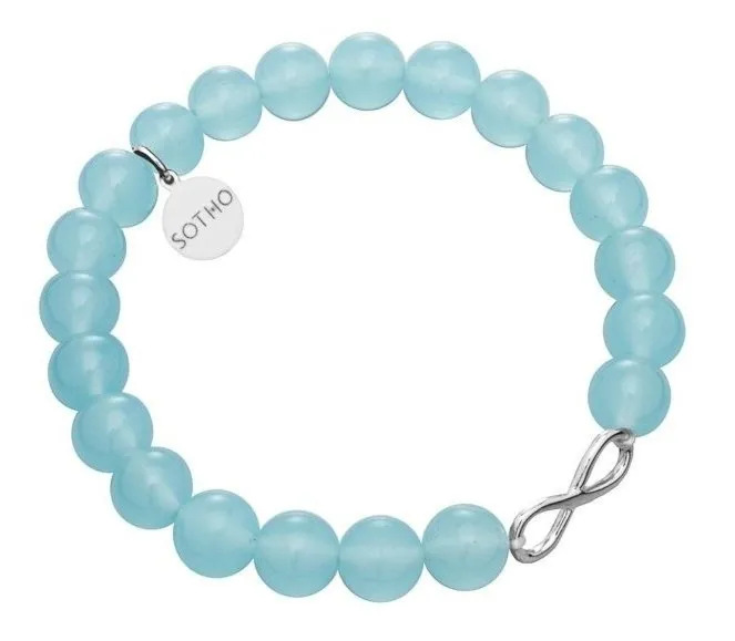 Niebieska bransoletka kwarc niebiański symbol nieskończoności infinity srebro 925