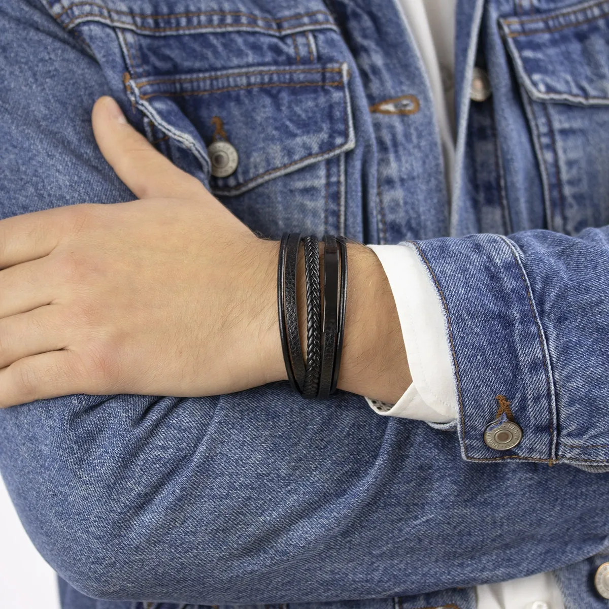 Bransoletka MĘSKA STAL SZLACHETNA 316L SKÓRA