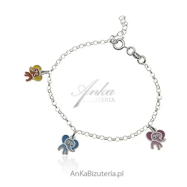 Biżuteria dziecięca - bransoletka srebrna z kolorowymi słonikami