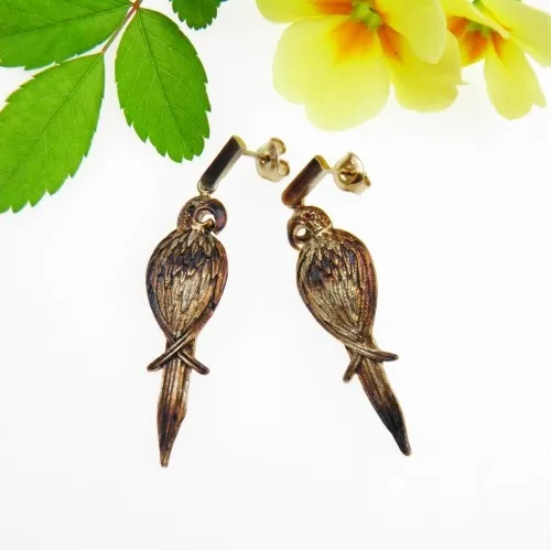 Kolczyki srebrne - Papugi brązowe na sztyftach
