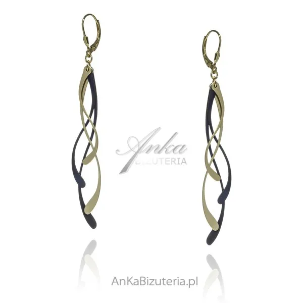 Długie kolczyki srebrne pozłacane z tytanem walc wiedeński