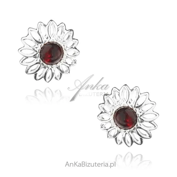 Kolczyki srebrne z wiśniowym bursztynem kwiatki