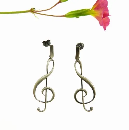 Klucze wiolinowe szare - kolczyki srebrne na sztyftach