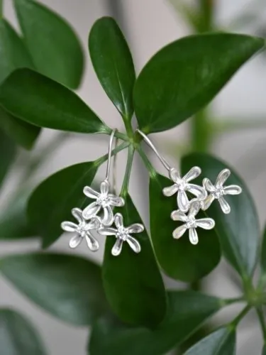 Kolczyki srebrne z trzema kwiatuszkami białymi - Subtell III
