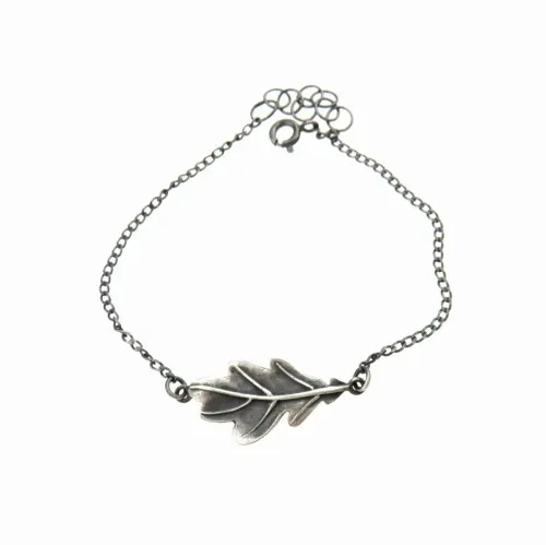 Bransoletka na łańcuszku z listkiem dębowym szarym