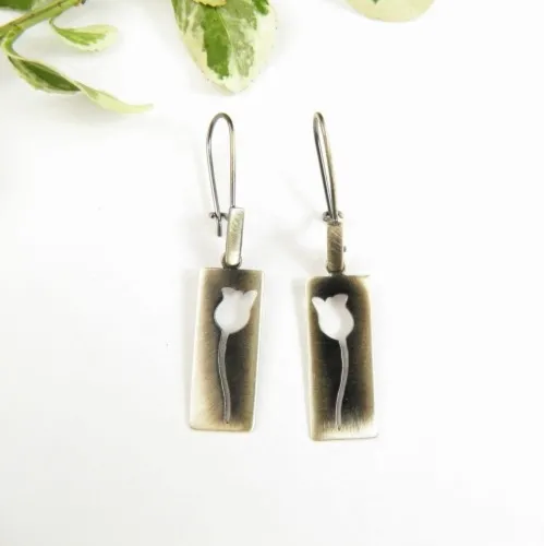 Kolczyki srebrne - Magnolie brązowe na sztyftach