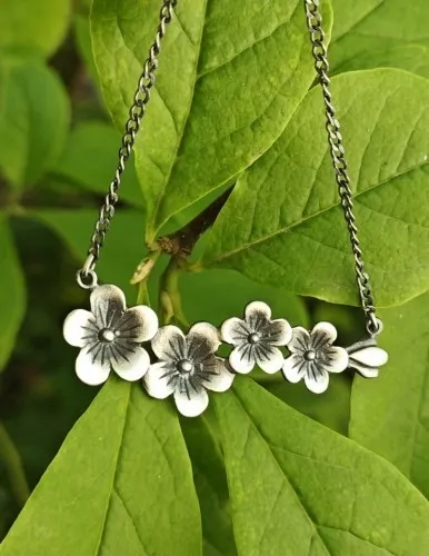 Naszyjnik srebrny z barwinkami - Letni ogród