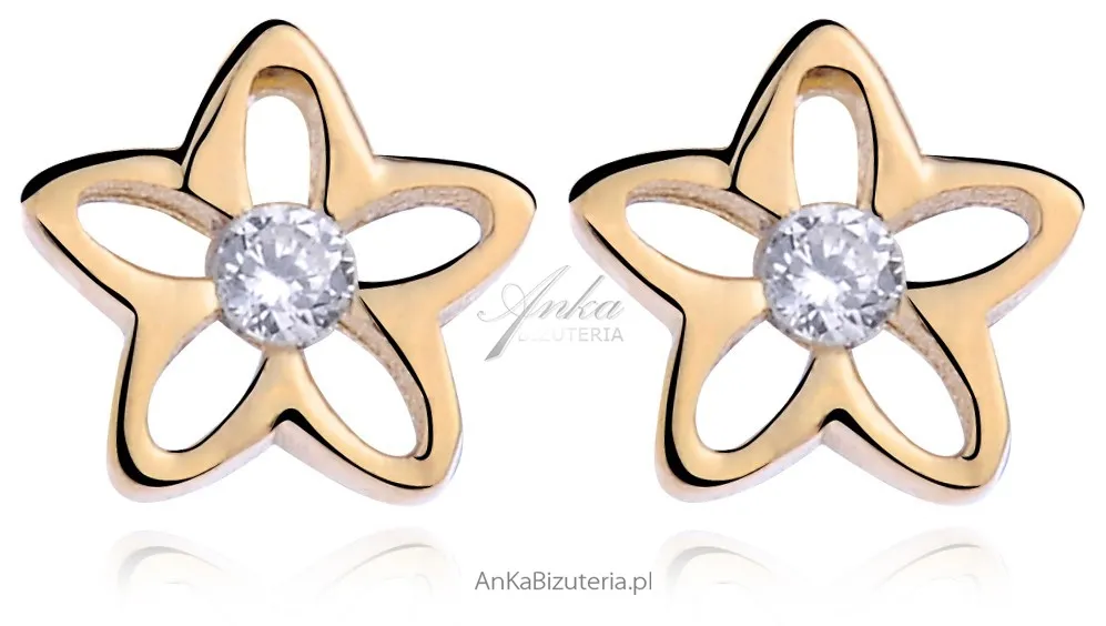 Kolczyki srebrne pozłacane kwiatki z cyrkonią
