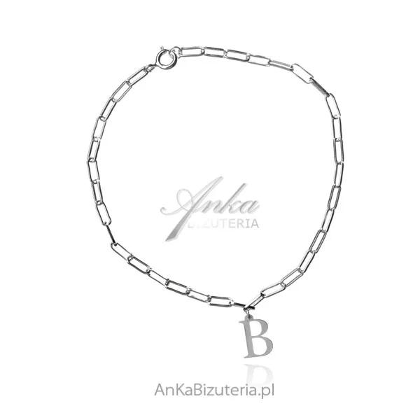 Bransoletka srebrna na łańcuszku flat unions - z literką b