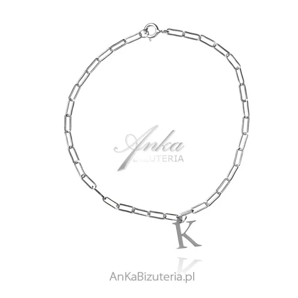 Bransoletka srebrna na łańcuszku flat unions - z literką k